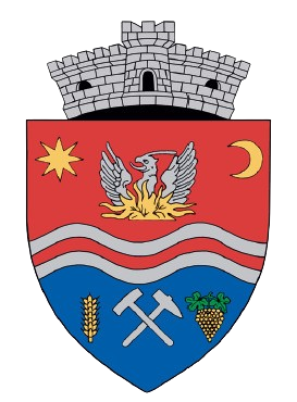 Câmpul inferior, albastru, este încărcat cu două ciocane pentru minerit, de argint, dispuse în pal, flancate în dreapta de un spic de grâu de aur şi în stânga de un ciorchine de struguri de aur cu două frunze verzi.
